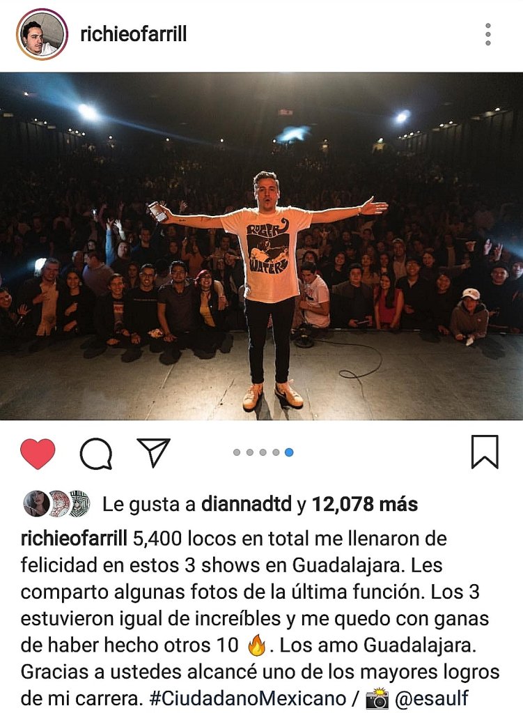 Al cierre del show me pide Ricardo hacer la toma oficial de la presentación dando la espalda al público y, sin más, entré al escenario. Me situé de frente y tan rápido como pude, hicimos la fotografía, misma que posteó O’farrill en sus redes como agradecimiento a los tapatíos.
